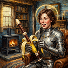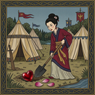 In front of the outhouse Xi Shi tries to repair her binoculars. She's been working on it for such a long time that she already grew a long Santa Claus beard.
